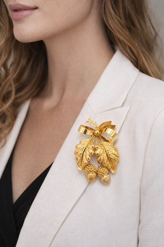 Tiffany & Co. Vintage Oak Leaf & Acorn Brooch / Pendant in 18K Gold – Made in Italy