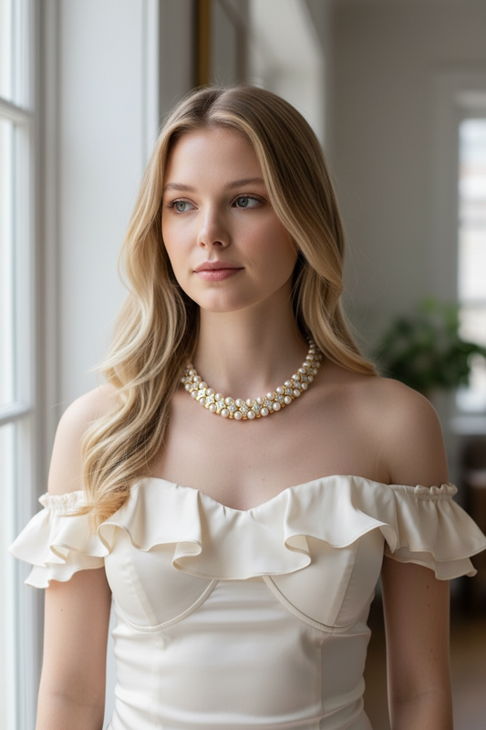 Vintage 18K Yellow Gold Pearl & Diamond Collar Necklace – Double Row Pearls