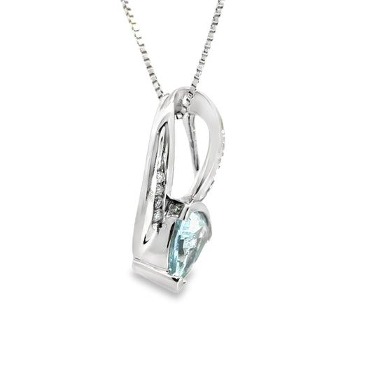 14K White Gold Aquamarine & Diamond Open Loop Design Pendant