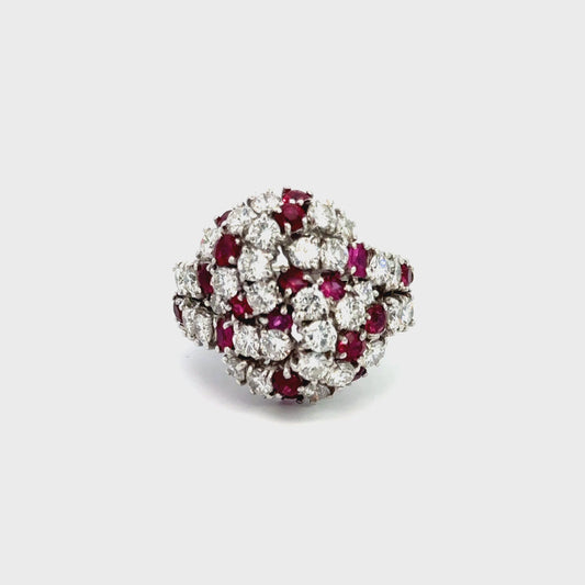 1950's 18K White Gold Ladies Dome Diamond & Ruby Ring