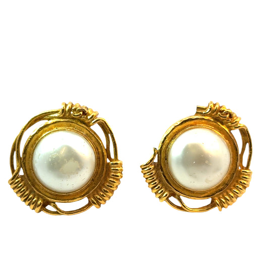 Vintage Chanel 1995 Gripoix Pearl & Gold Clip-On Earrings