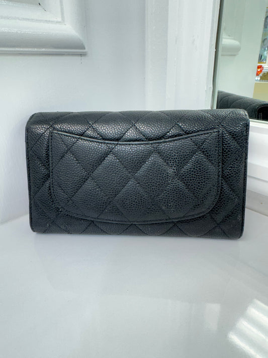 Vintage Chanel Black Caviar Leather Wallet with Authenticity Card