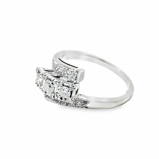 14K White Gold & Diamond Art Deco Bypass Ring