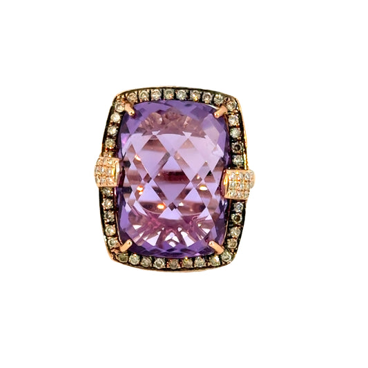 Vibrant 14K Rose Gold Amethyst & Diamond Ring