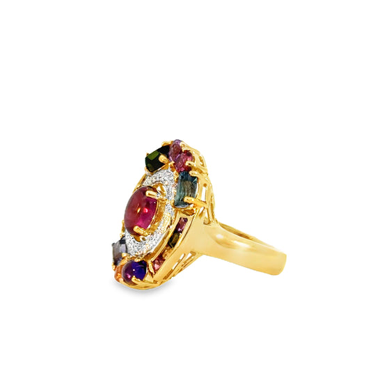 18K Yellow Gold Colorful Multi-Stone Statement Ring