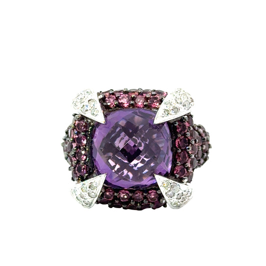 14K White Gold Dramatic Amethyst & Diamond Cocktail Ring