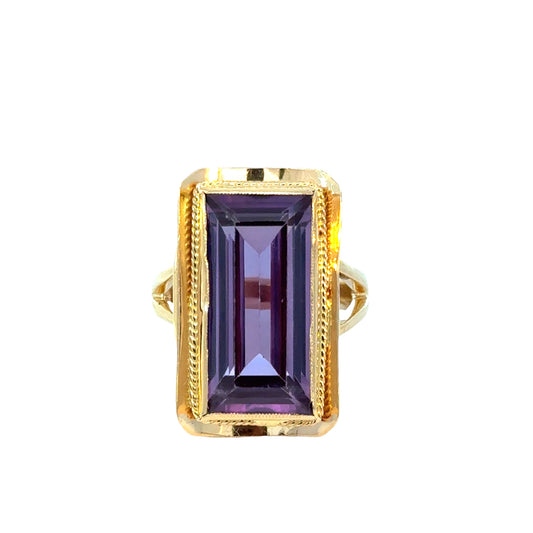 Mid-Century 14K Rose Gold Amethyst Statement Ring – 1950’s
