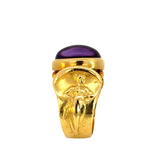 Athena 18K Yellow Gold Ring with Amethyst & Mythological Figures