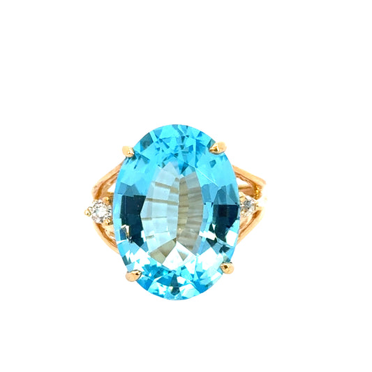 Stunning 14K Oval Cut Blue Aquamarine and Diamond Ring