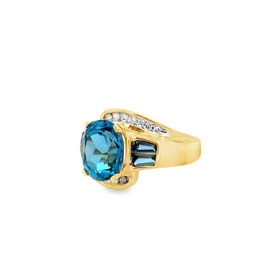 14K Yellow Gold Oval & Baguette Cut Aquamarine & Diamond Accent Ring