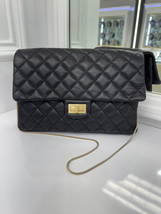 Authentic Chanel Reissue 2.55 Quilted Lambskin Leather Flap Bag – Black with Gold Hardware