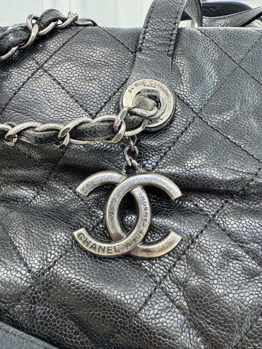 Chanel Large Quilted Caviar Leather Tote with Chain & Top Handles – Black / Burgundy Interior