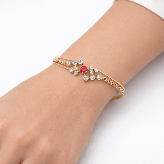Elegant 18K Yellow Gold Red Garnet Bangle
