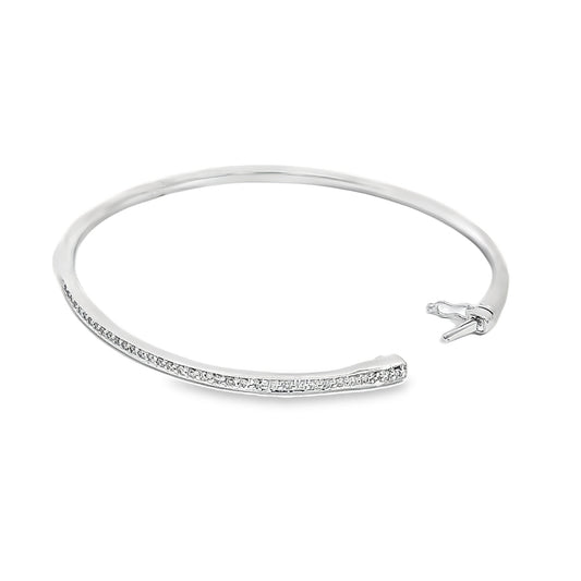 14K White Gold Bypass Design Bangle with Three Diamonds