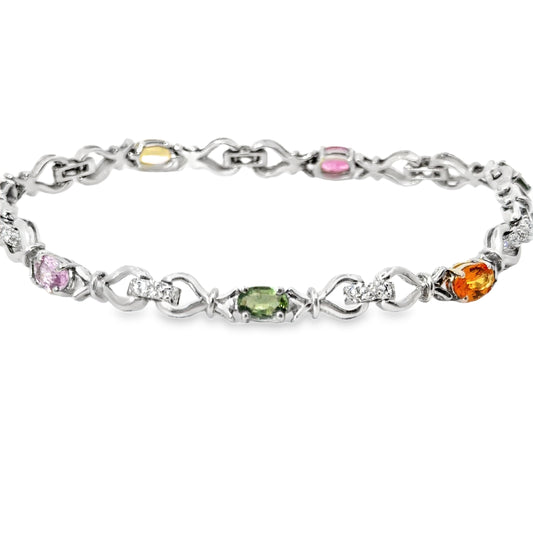 14K White Gold Multi-Color Stone & Diamond Bracelet