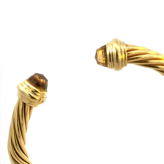 David Yurman 18K Yellow Gold Cable Bangle with Faceted Citrine End Caps