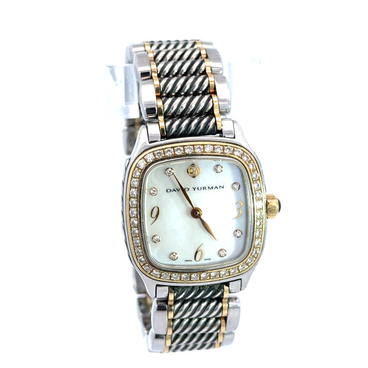 David Yurman Stainless Steel, Sterling Silver & 18K Yellow Gold Diamond Bezel Watch – Mother-of-Pearl Dial