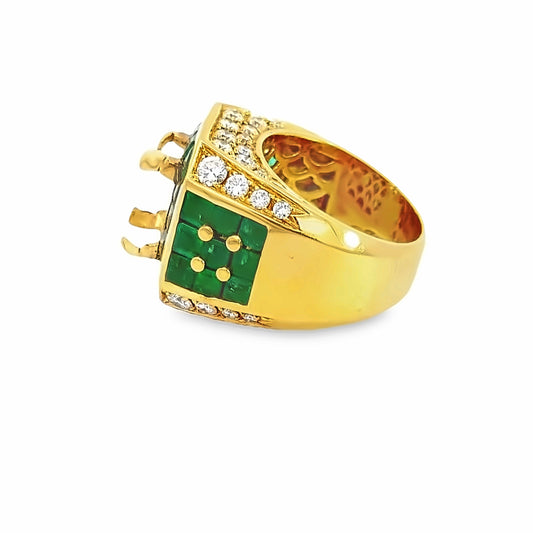 Regal Elegance 18K Gold Ring with Emerald Center Stone