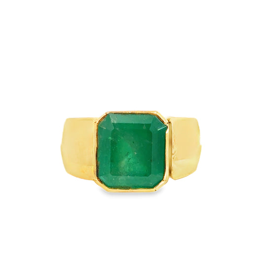 18K Gold Ring Adorned with Beautiful Green Emerald