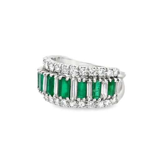 Platinum Emerald and Diamond Multi-Row Band Ring – Exquisite Fine Jewelry
