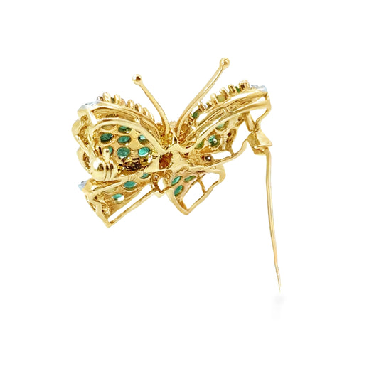 14K Yellow Gold Emerald & Diamond Mid-Century Butterfly Brooch
