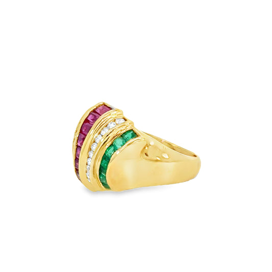 18K Yellow Gold Ruby, Sapphire, Emerald & Diamond Cocktail Ring