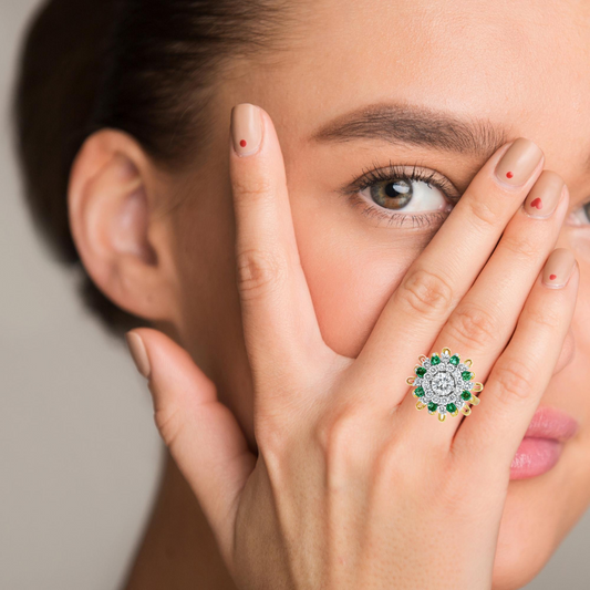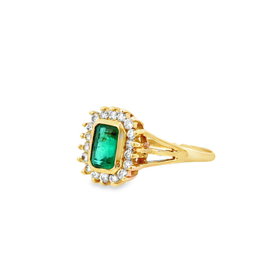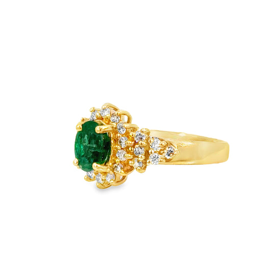 14K Yellow Gold Emerald & Diamond Halo Ring