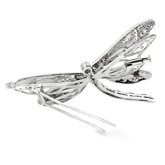 Exquisite 18K White Gold Diamond & Enamel Dragonfly Brooch