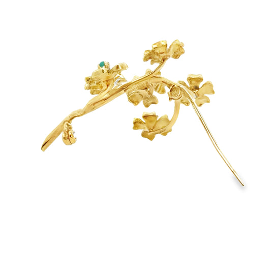 18K Yellow Gold & Enamel Delicate Flower Brooch