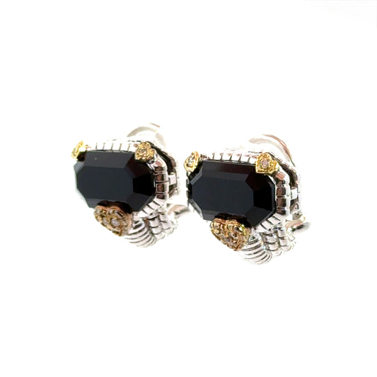 Judith Ripka Sterling & 18K Gold Black Onyx Diamond Earrings