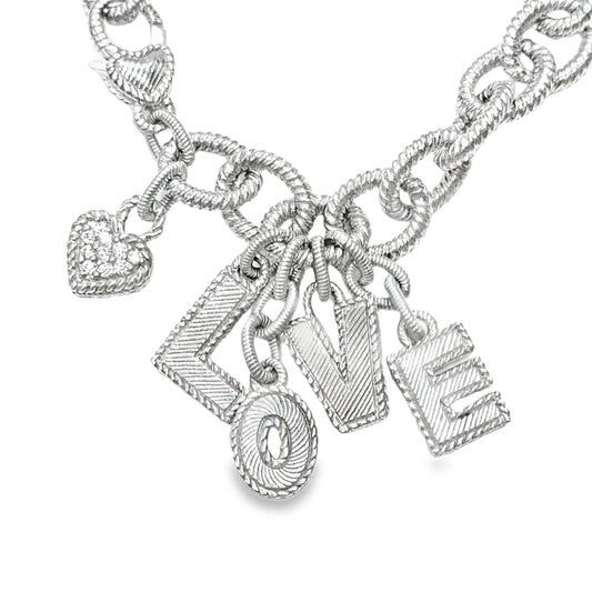 Judith Ripka Sterling Silver LOVE Charm Bracelet with Diamond Heart