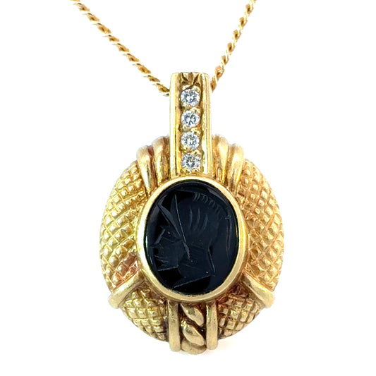 Judith Ripka 18K Yellow Gold Carved Onyx Pendant with Diamond Accents