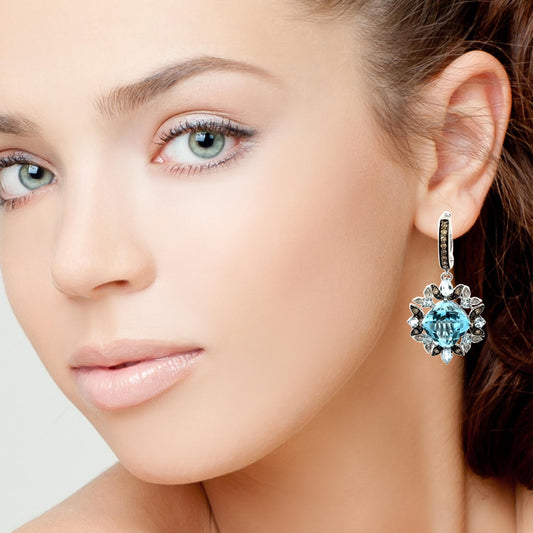 Le Vian Stunning 14K White Gold Aquamarine & Diamond Earrings