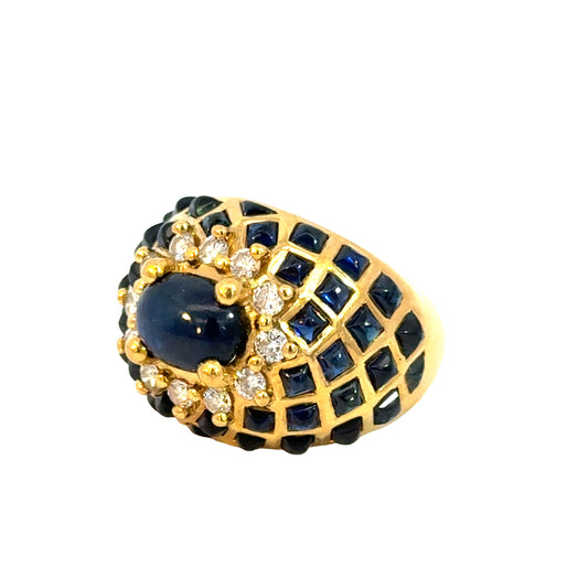 Luxury Le Vian 18K Gold Cabochon Sapphire Ring with Diamond Halo and Geometric Design
