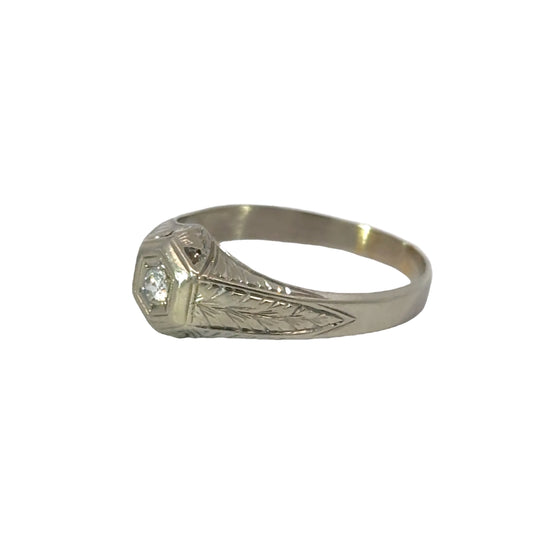Antique 20K White Gold Leaf Design Men’s Wedding Ring