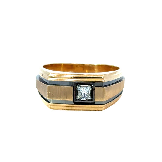 14K Yellow Gold Contemporary Diamond & Enamel Ring