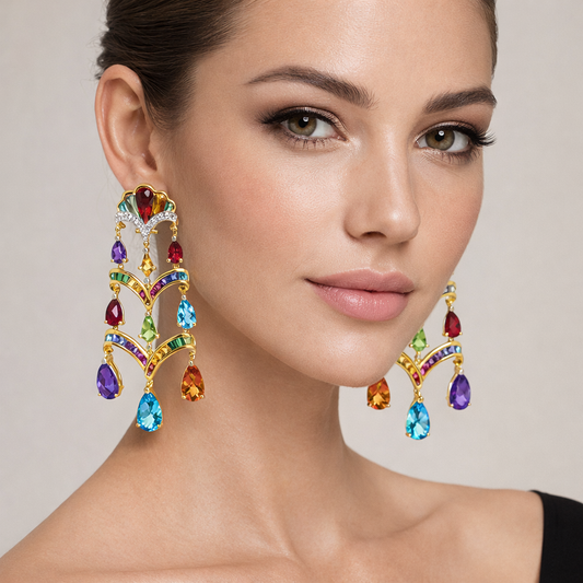 18K Yellow Gold Multicolor Tourmaline & Diamond French-Clip Chandelier Earrings