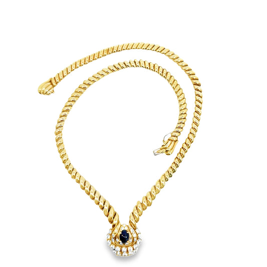 14K Yellow Gold Sapphire & Diamond Collar Necklace