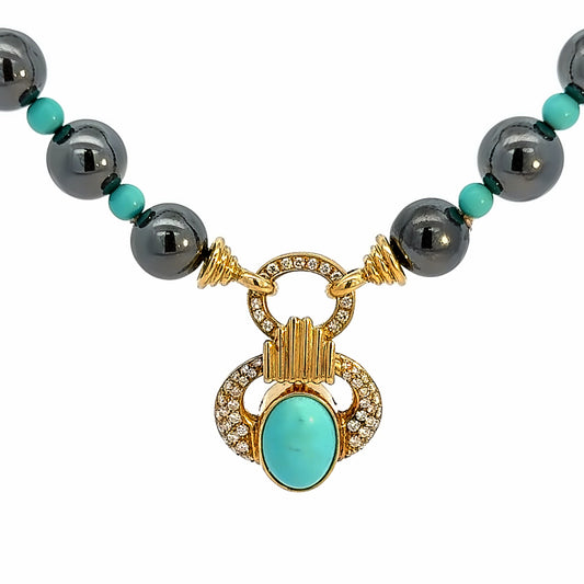 Bellucci Asuncion 18K Yellow Gold Turquoise, Hematite & Diamond Necklace