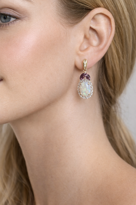 14K Two-Tone Gold Opal, Diamond & Pink Tourmaline Drop Earrings