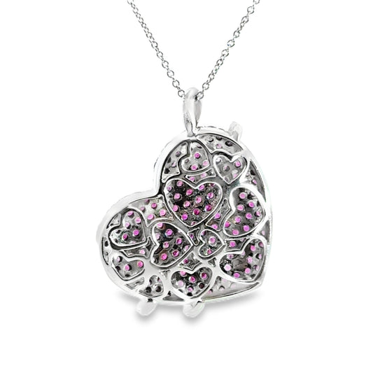 Effy 14K White Gold Pink Sapphire & Diamond Heart Pendant