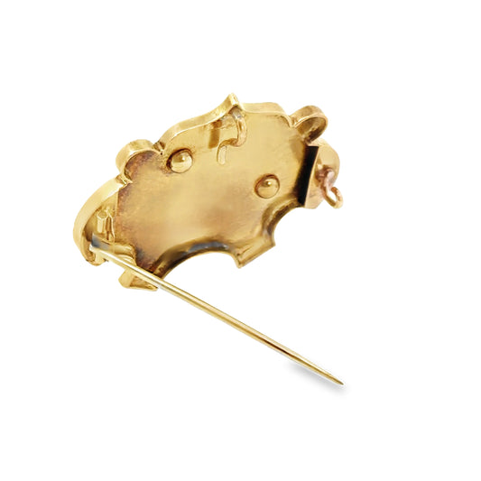 14K Yellow Gold Enamel & Seed Pearl Brooch/Pendant