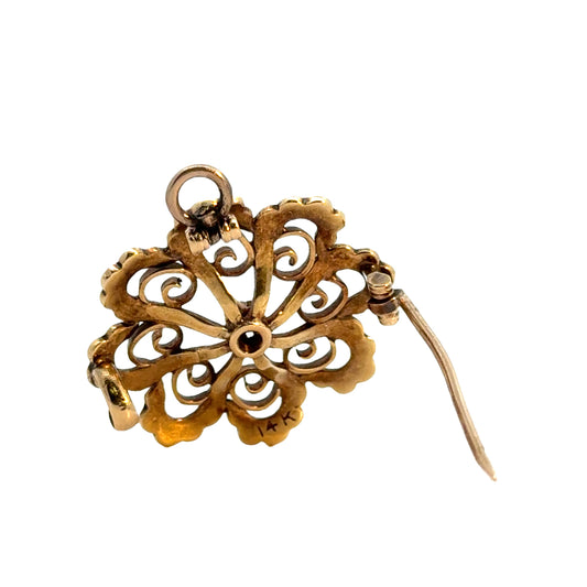 Victorian Rose Gold Seed Pearls & Diamond Sunburst Brooch/Pendant