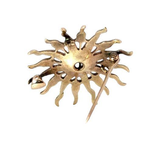 Victorian 14K Rose Gold & Seed Pearls Sunburst Brooch/Pendant