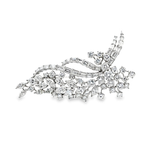 Antique Platinum & Diamond Cascading Leaves Brooch