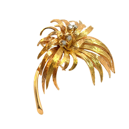 Elegant 18K Yellow Gold & Diamond Burst of Leaves Brooch