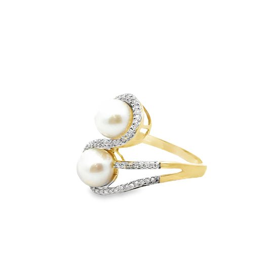 Spectacular 18K Two-Tone Multi Band Ring with White and Yellow Melee Cut Diamonds & a Pear Cut Yellow Diamond Center Stone