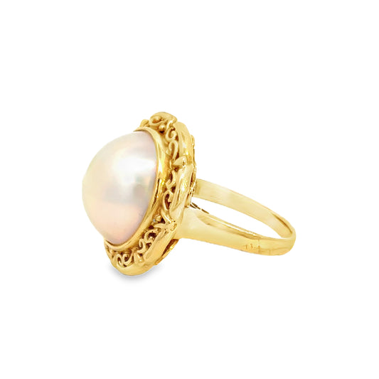 Stunning Estate Carved White Opal & Platinum Ring with a Halo of Diamonds