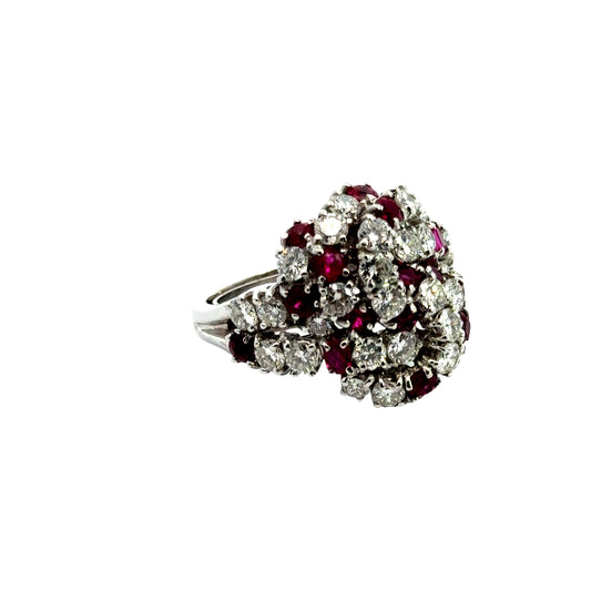 1950's 18K White Gold Ladies Dome Diamond & Ruby Ring