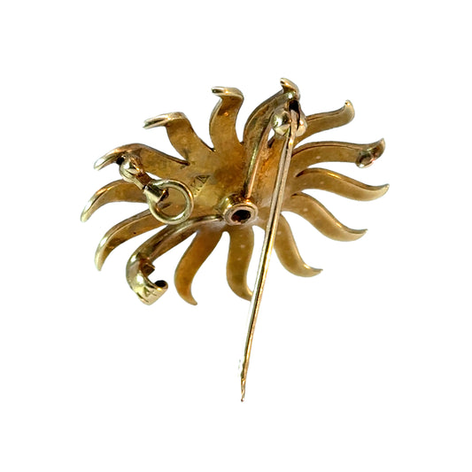 14K Yellow Gold Ruby & Seed Pearls Vintage Sunburst Brooch/Pendant